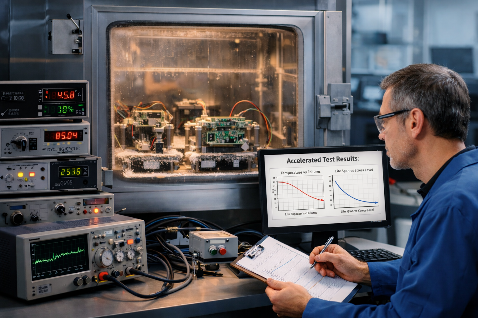 Our experts design and analyze accelerated testing programs that reduce test duration and required sample sizes while maintaining technical rigor and methodological defensibility. Testing objectives may include identifying underlying failure mechanisms or demonstrating whether defined reliability requirements have been met. Test plans, assumptions, and conclusions are documented using accepted engineering and statistical practices, providing a clear, objective basis to support engineering decisions, regulatory review, and expert testimony. This approach helps organizations appropriately balance technical risk, cost, and confidence in reliability determinations.